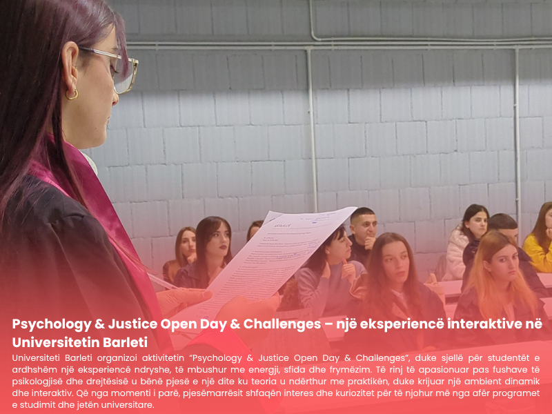 Universiteti Barleti organizoi aktivitetin “Psychology & Justice Open Day & Challenges”, duke sjellë për studentët e ardhshëm një eksperiencë ndryshe, të mbushur me energji, sfida dhe frymëzim.